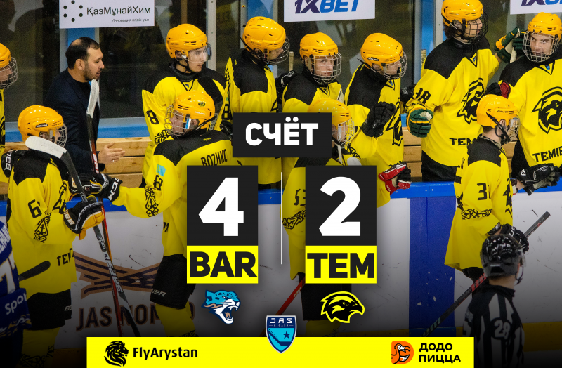 Уступаем астанчанам в первом матче со счетом 4:2, пропустив последнюю шайбу в пустые ворота.