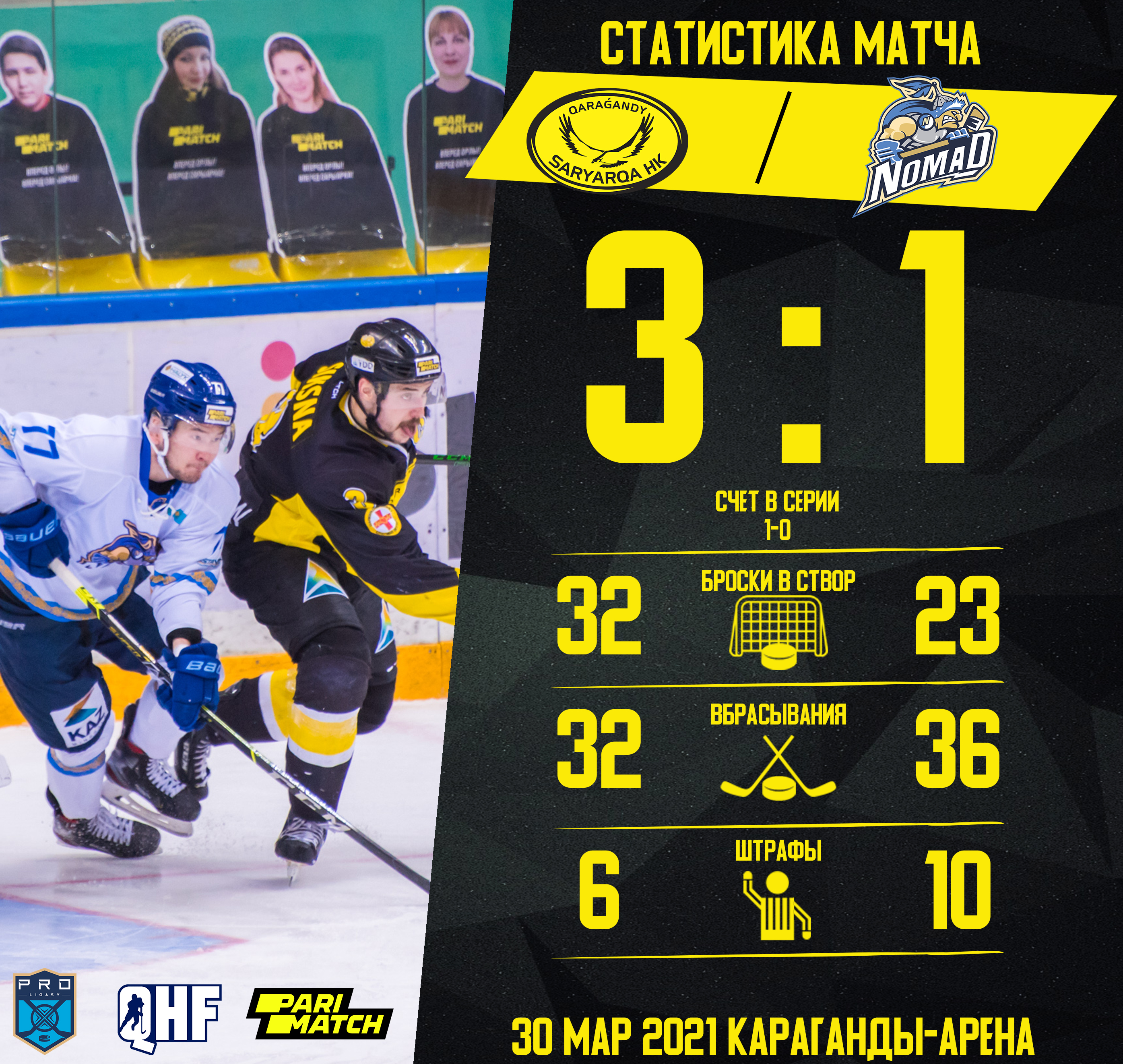 30 марта в Караганде состоялся первый матч 1/2 финала PRO HOKEI LIGASY