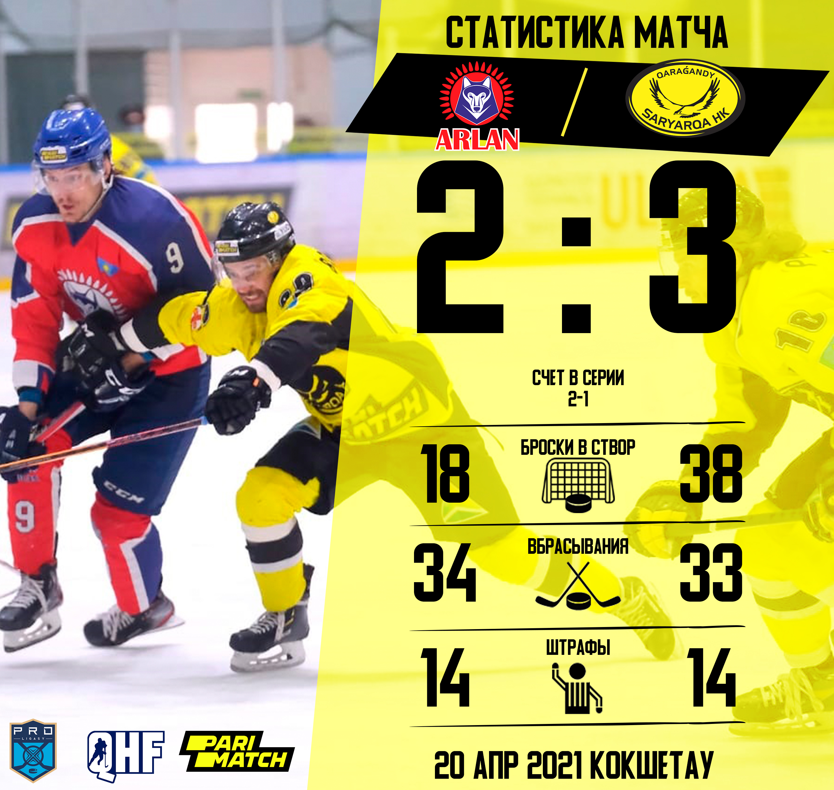 20 апреля в Кокшетау прошел третий матч финальной серии плей-офф между "Арланом" и "Сарыаркой"