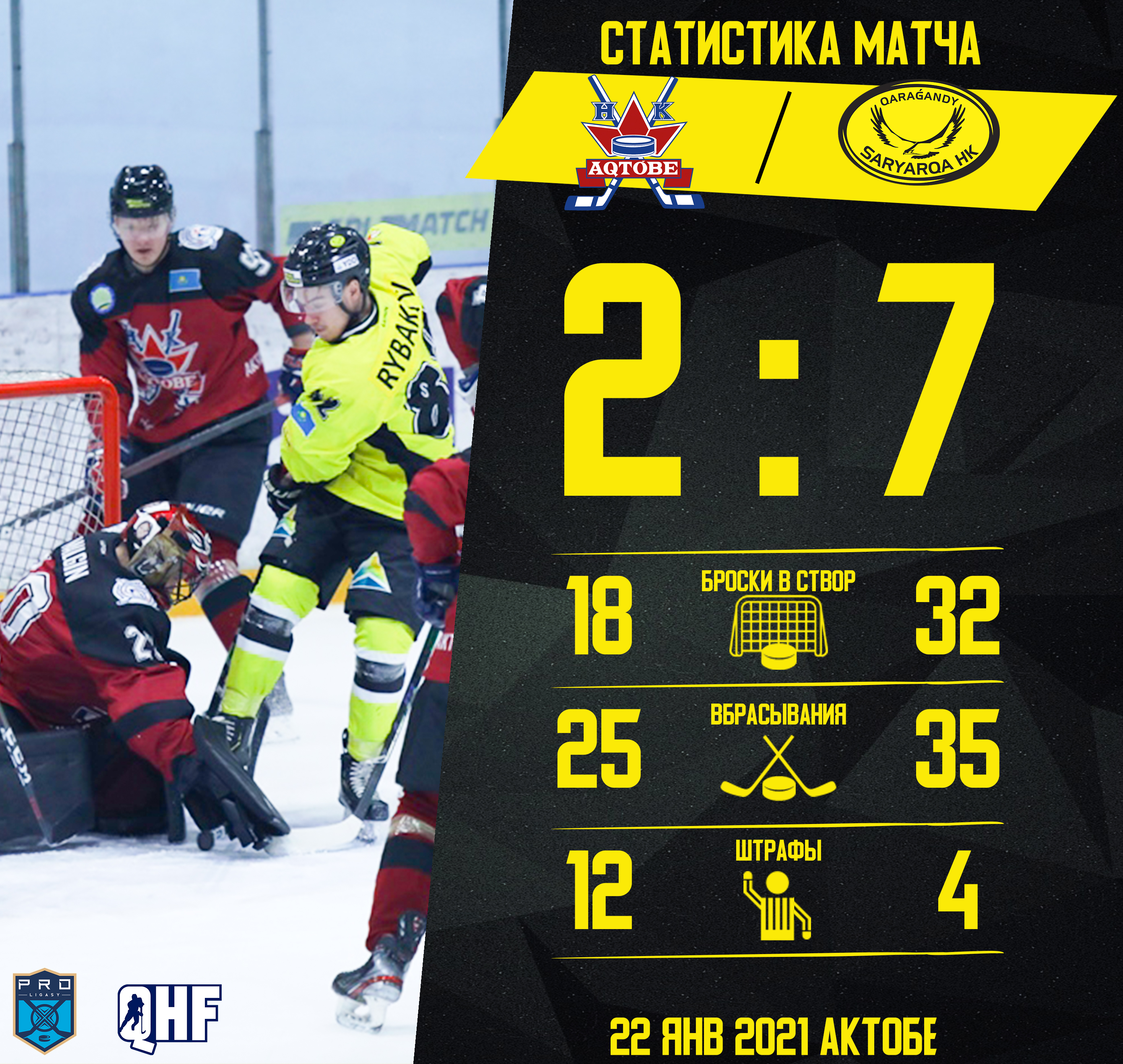 Атаки обеих команд непрерывно шли то в одни, то в другие ворота. На 46 минуте, врываясь в зону «желто-черных», с передачи Скатова отличился забитой шайбой Митряков. Точку в этой встрече поставил Никулин. На последних секундах игры, с ассиста Желнеровского и Михайлова, Никулин забросил седьмую шайбу в ворота. С ПОБЕДОЙ САРЫАРКА!