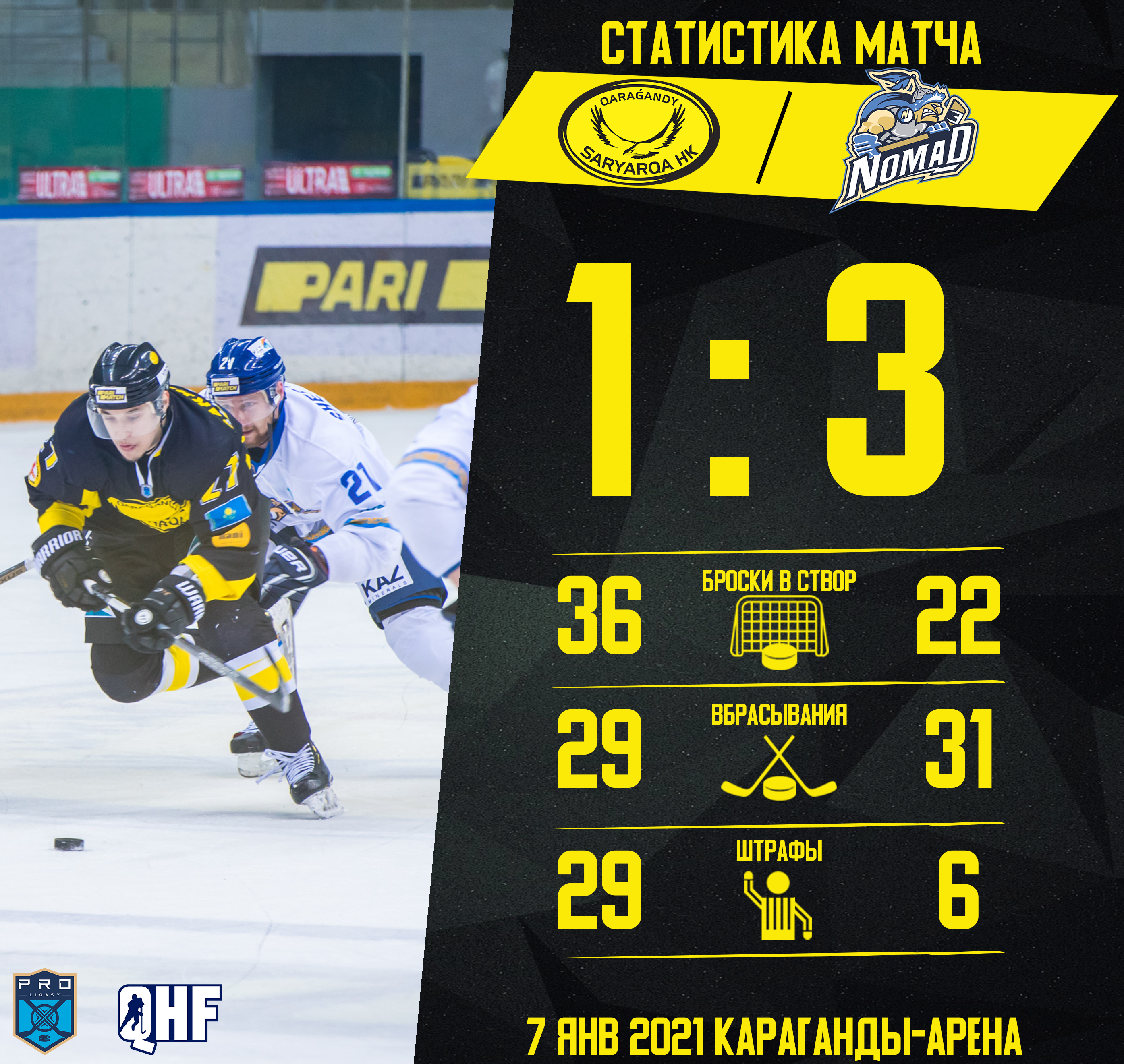 "Сарыарка" - "Номад" 1:3 (0:2, 0:0, 1:1)