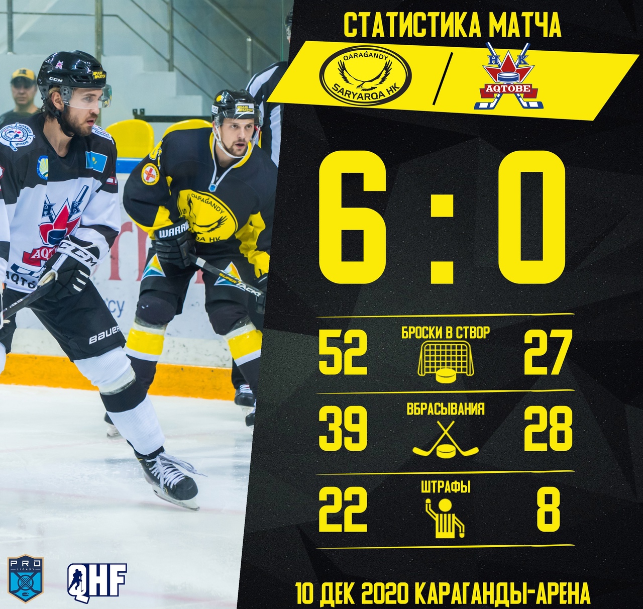 Точку в матче поставил Дмитрий Желнеровский на 50 минуте, отреагировав на передачу Кирилла Кожевникова и Антона Горбачева. Итог - уверенная победа "Сарыарки" 6:0 над ХК "Актобе"!