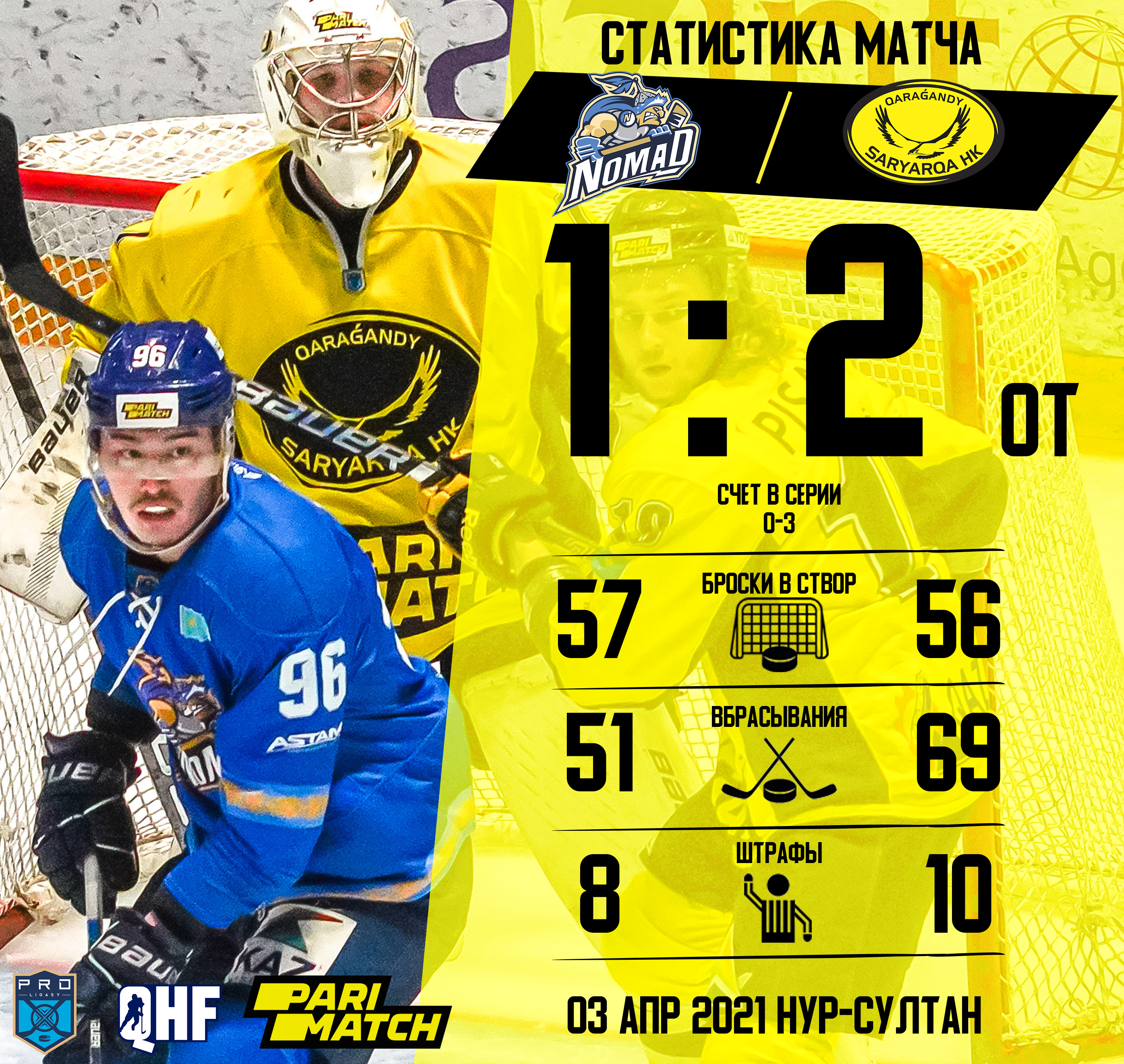 3 апреля в городе Нур-Султан прошел третий матч в серии полуфинальных игр между столичным "Номадом" и карагандинской "Сарыаркой".