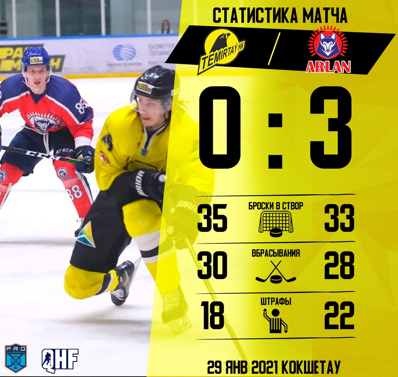 «Темиртау» - «Арлан» 0:3 (0:2, 0:0, 0:1)