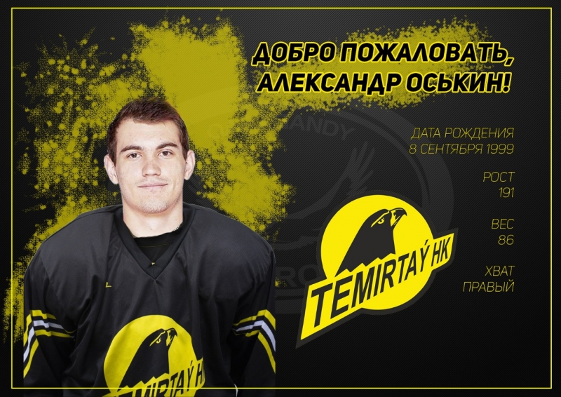Стан ХК "Темиртау" пополнил нападающий Александр Оськин.