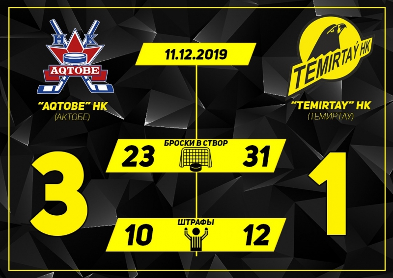В заключительной трети матча подопечные Евгения Королева перебросали соперника в два раза (10:4), но голкипер актюбинцев отводил угрозы от своих ворот. "Актобе" сели в глухую оборону и играли на контратаках, одна из которых завершилась победной шайбой на 59 минуте, 1:3, "Темиртау" показали хорошую игру, твердый настрой, но соперник оказался удачливее.