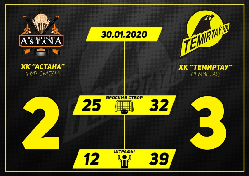 "Астана" (Нур-Султан) - "Темиртау" (Темиртау) - 2:3 (1:1; 0:0; 1:2)