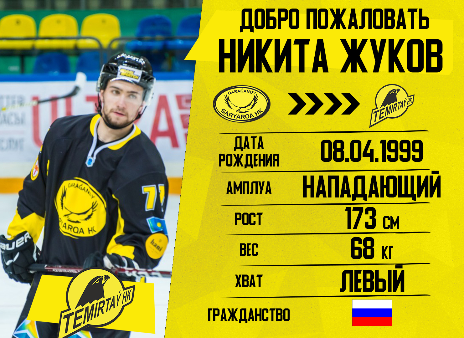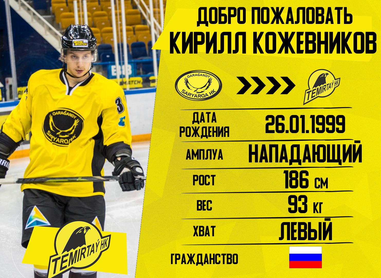 Нападающие Никита Жуков и Кирилл Кожевников, а также защитник Глеб Штайгер из "Сарыарки" перешли в "Темиртау"!