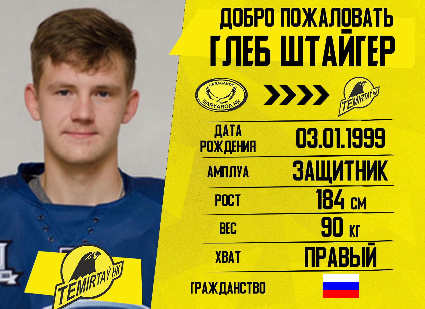 Штайгер Глеб Романович, родился 03 января 1999 г, защитник. Воспитанник новокузнецкой школы хоккея.