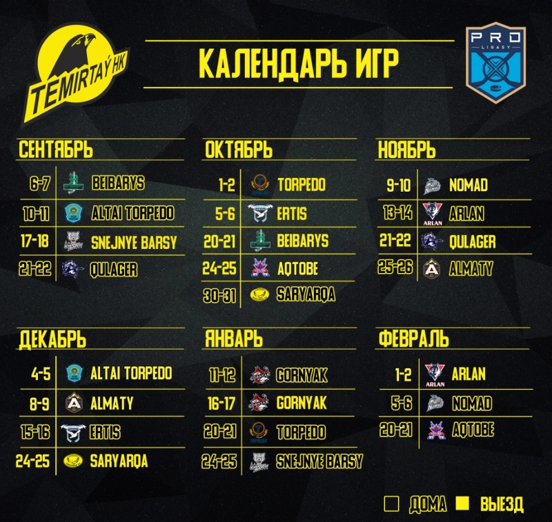 Календарь игр "Темиртау" на сезон 2021-2022 Pro Hokei Ligasy