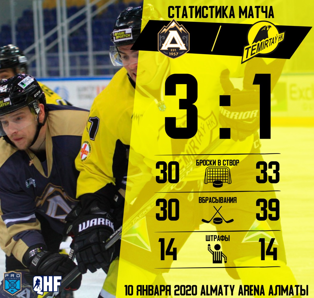 "Алматы" - "Темиртау" - 3:1 (2:0; 1:0; 0:1)