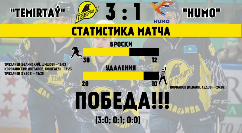 ХК «Темиртау» - ХК «Хумо» 3:1 (3:0; 0:1; 0:0)