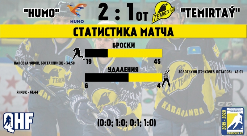 В стартовом отрезке матча команды обменялись несколькими атаками, но открыть счёт не удалось. Нуливой ничьей закончился первый период. Первую шайбу зрители увидели лишь в середине второй двадцатиминутки. Хозяева площадки вышли вперёд, играя в большинстве, 1:0. Трижды у "Темиртау" была возможность реализовать численное преимущество, но немного не хватило удачи ребятам. На второй перерыв команды отправились при счёте 1:0 в пользу "Хумо-2". Третий период проходил под диктовку "желто-черных", команда много и опасно атаковала, а статистика бросков говорит сама за себя: 12-3 в пользу темиртаусцев. Одна из таких атак завершилась взятием ворот, отличился Иван Золотухин, забросив шайбу между щитков вратаря, 1:1. До окончания этой трети подопечные Евгения Королева продолжали брать штурмом ворота соперника, однако хоккеисты из Ташкента удержали ничейный счет до сирены об окончании основного времени. Победитель матча определился в овертайме. Нападающий "Хумо-2" оказался немного проворнее защиты гостей, 2:1, "Темиртау" терпит поражение в первой встрече двухматчевого противостояния. ХК «Хумо-2» - ХК «Темиртау» 2:1 ОТ (0:0; 1:0; 0:1; 1:0). 1:0 Панов (Амиров, Бостанжиев) – 34:58 ГБ; 1:1 Золотухин (Трухачев, Потапов) – 48:01; 2:1 Янчук – 61:44. Вратари: Закиров - Ибрагимов. Повторная встреча состоится завтра, 20 ноября в 14:00 по времени города Нур-Султан. Следите за новостями на нашем официальном сайте и в социальных сетях, чтобы не пропустить.