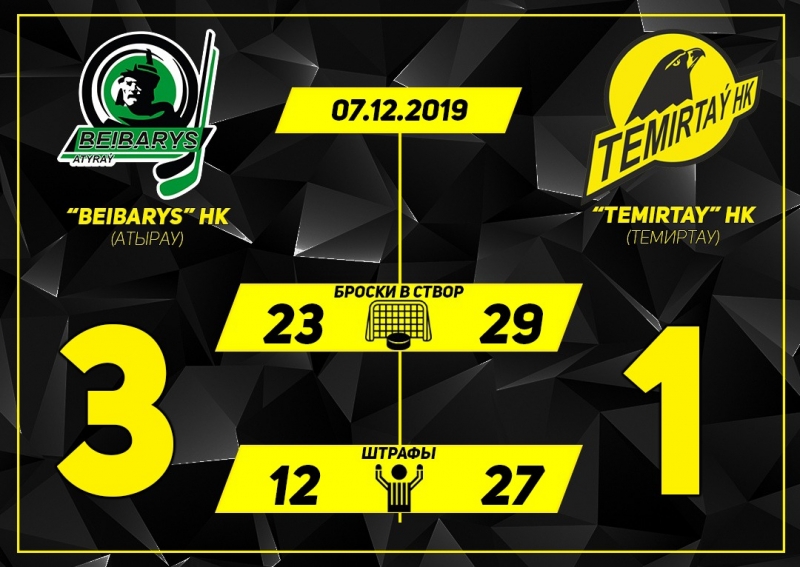 Исход матча решили две шайбы в ворота "Темиртау" в заключительной трети поединка. Но как "орлы" ни старались, спасти матч им не удалось. Итоговый счет - 3:1 в пользу команды из Атырау.
