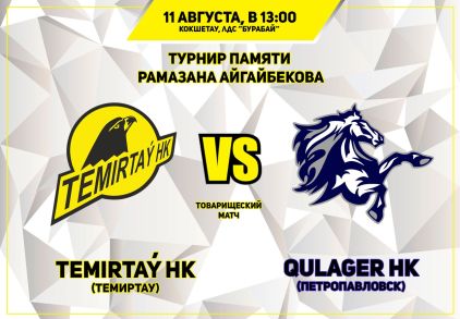 Прямая трансляция матча ХК "Темиртау" (Темиртау) -ХК "Кулагер" (Петропавловск). Турнир памяти Рамазана Айгайбекова. Начало матча в 13:00 по столичному времени.