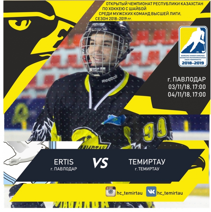Прямая трансляция повторного матча между командами ХК "Ertis" и ХК "Темиртау". Начала матча в 17:00.