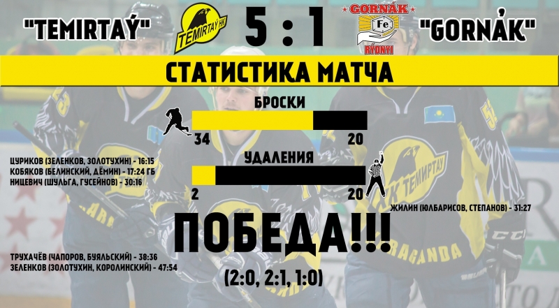 Заключительный отрезок матча также остался за «Темиртау». Точку же в матче поставил нападающий Вадим Зеленков – 5:1.