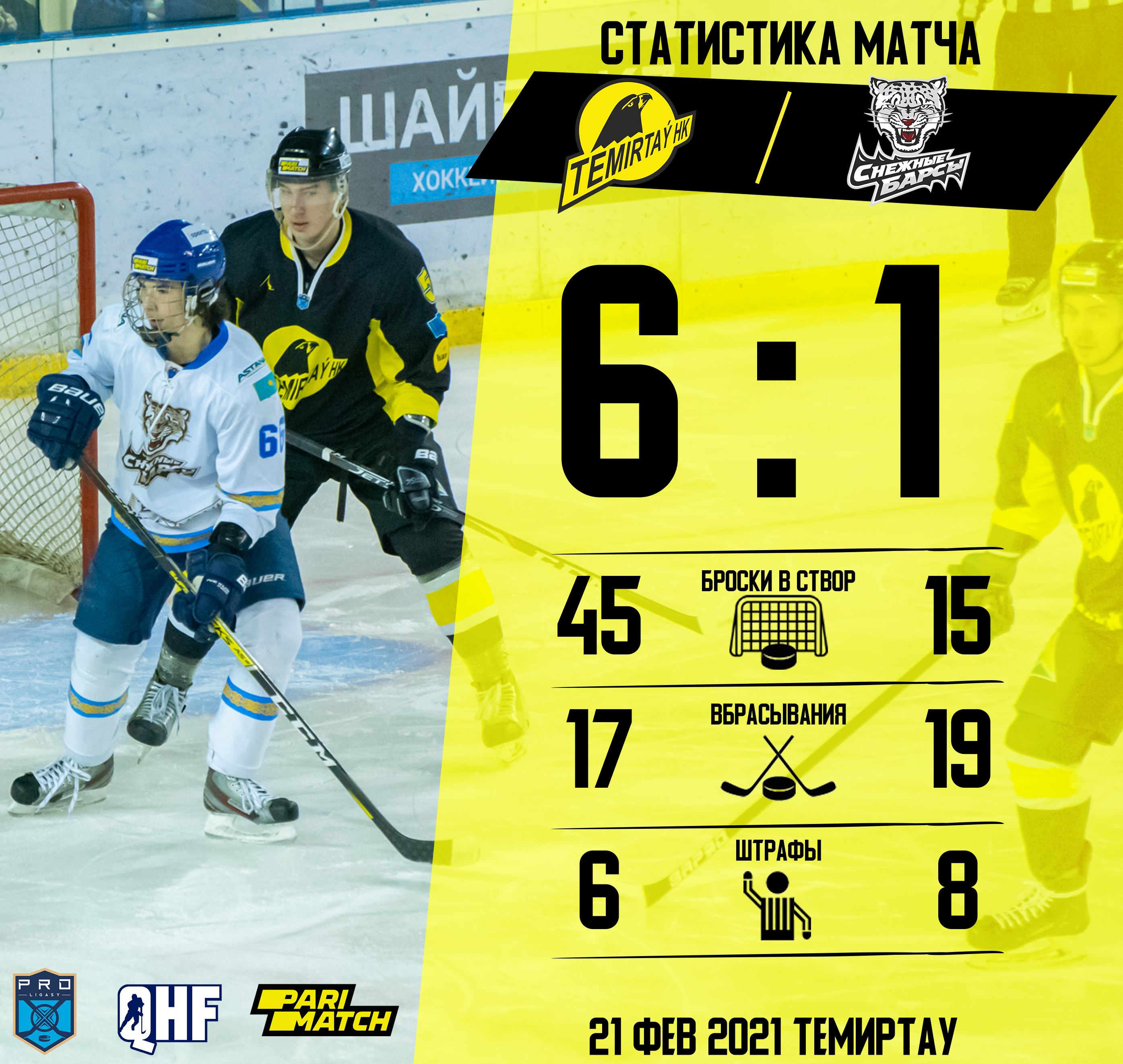 21 февраля в рамках Чемпионата Казахстана по хоккею в городе Темиртау встретились команды «Темиртау» и «Снежные Барсы».