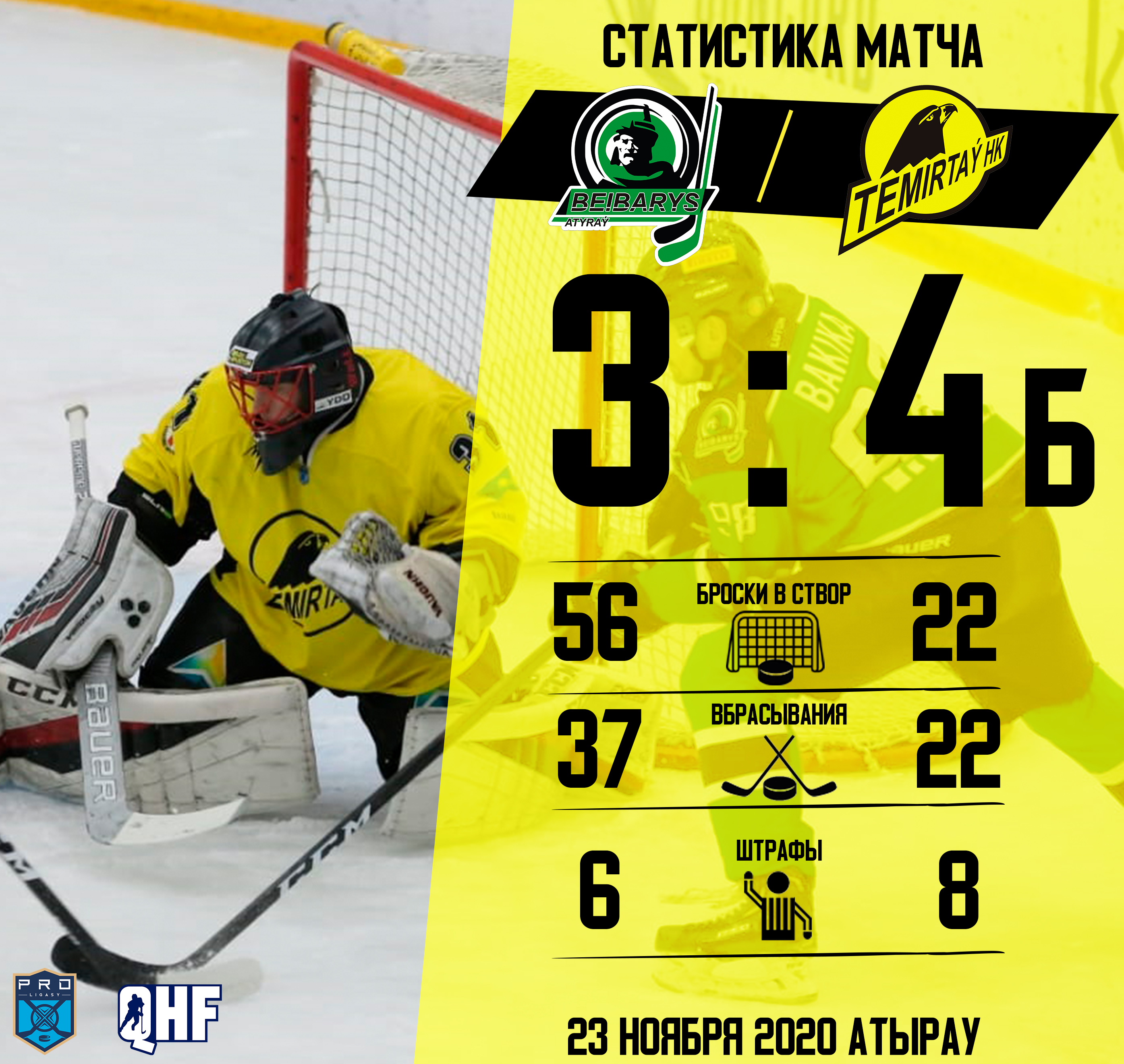 "Бейбарыс" - "Темиртау" - 3:4 Б (0:0, 1:1, 2:2, 0:0, 0:1)