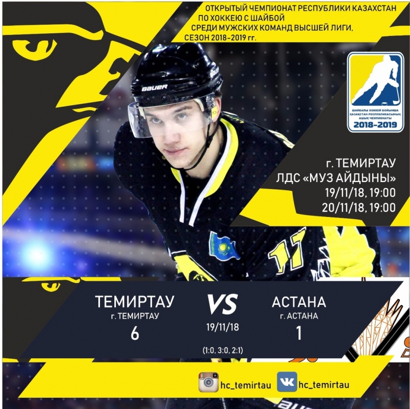 В первом домашнем матче хозяева льда разгромили гостей со счетом 6:1. В первом периоде "Темиртау" забросила одну шайбу, автором которой стал Павел Скуматов. Во второй двадцатиминутке последовали еще три шайбы в ворота астанинской команды. Александр Егоров отличился дублем, так же шайбу забросил Кирилл Пономарев.