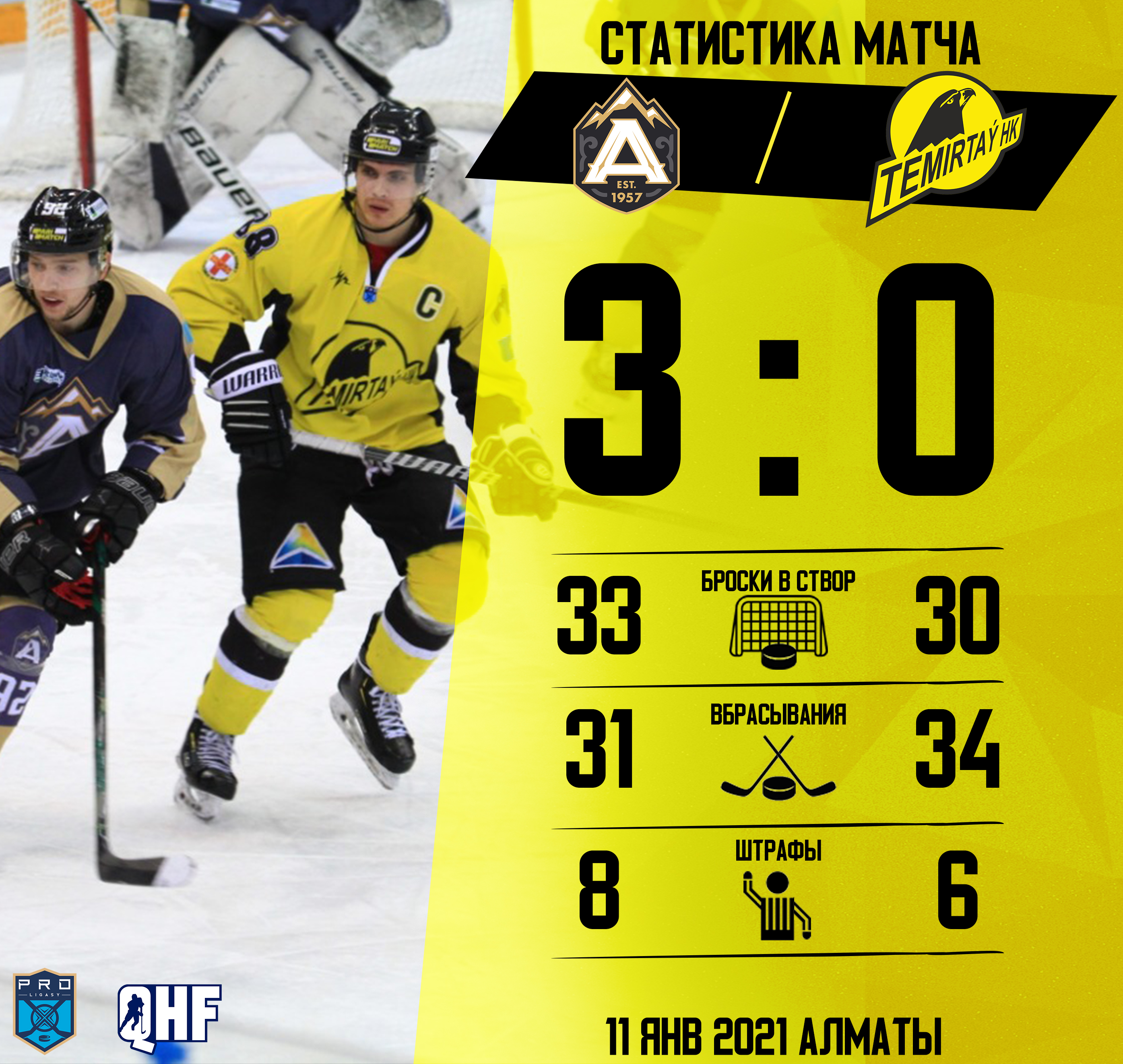 "Алматы" - "Темиртау" - 3:0 (2:0; 0:0; 1:0)