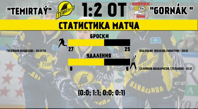 ХК «Темиртау» (Темиртау) - ХК «Горняк» (Рудный) 1:2 ОТ (0:0, 1:1, 0:0, 0:1)