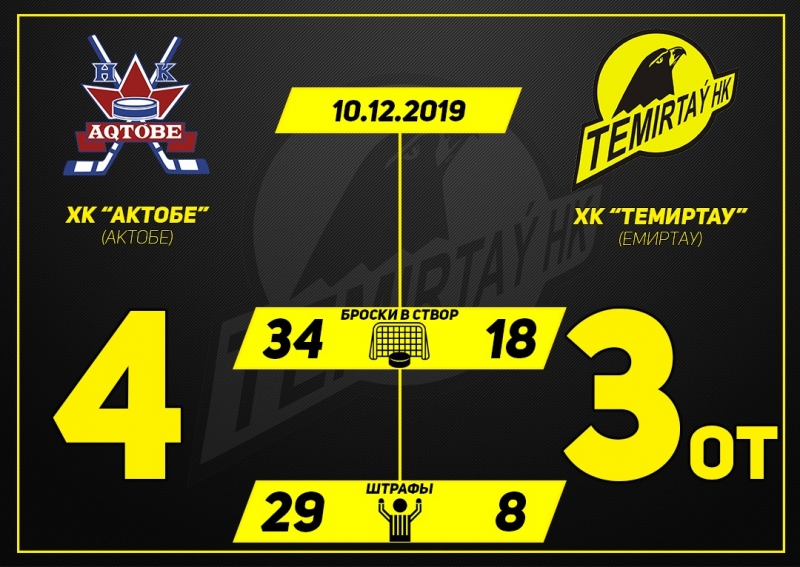 "Актобе" - "Темиртау" - 4:3 ОТ (1:1; 0:0; 2:2; 1:0).