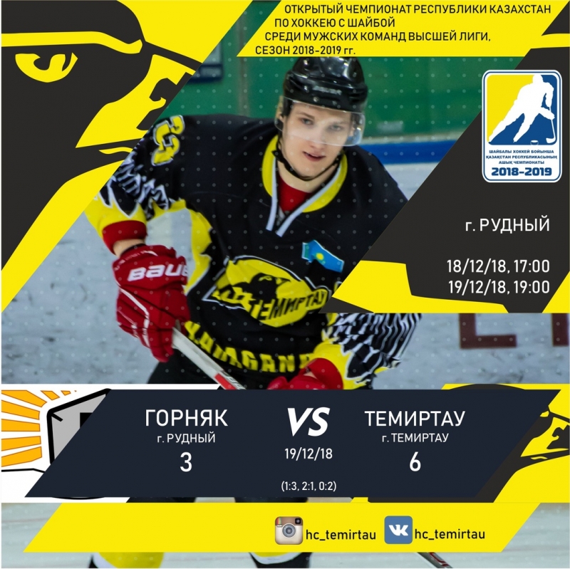 Матч завершился со счетом 3:6 в пользу ХК «Темиртау»!